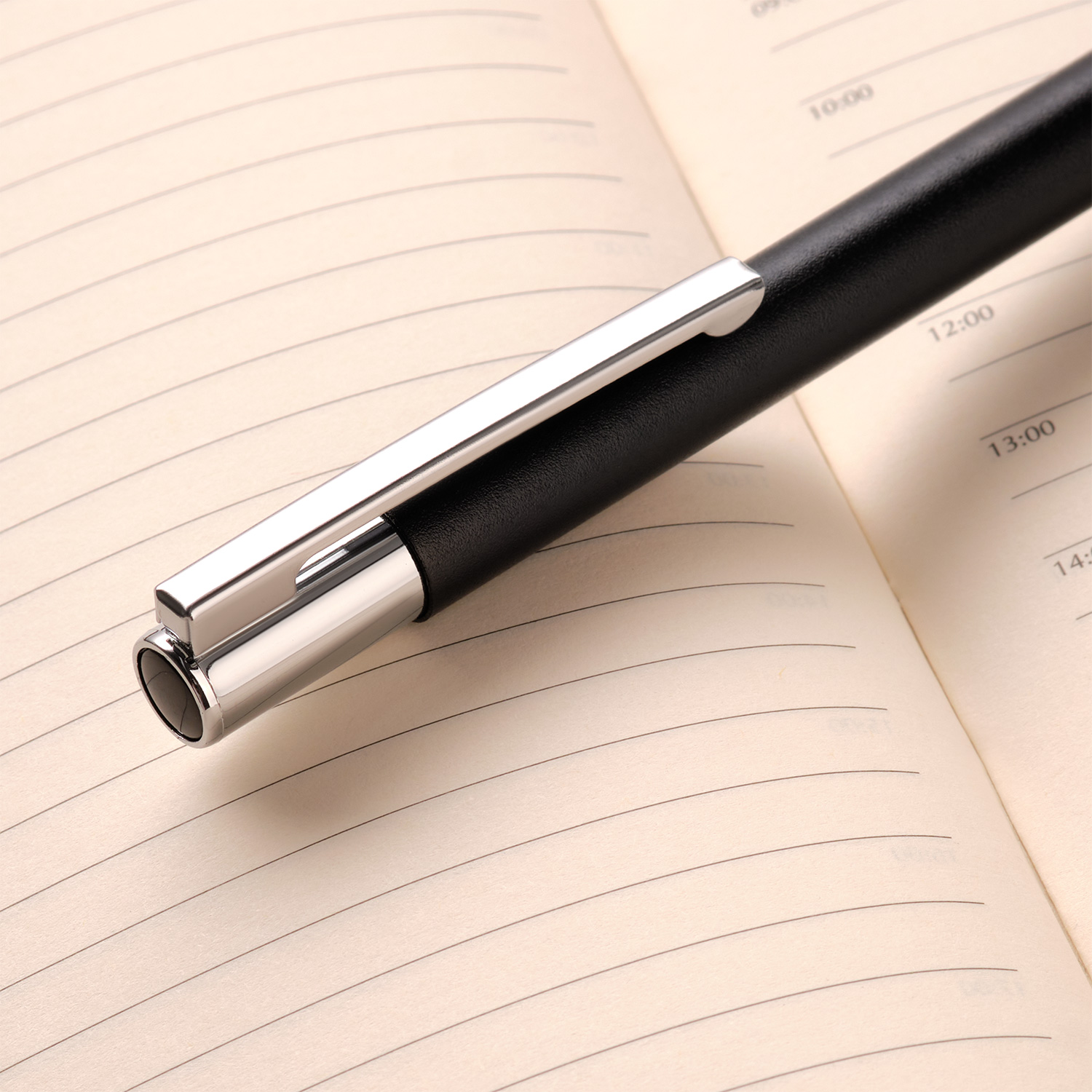 Классическая ручка эргономичной формы выполнена в строгом стиле. Декоративные детали в виде хромированного кольца у основания и клипа придают ручке элегантность.