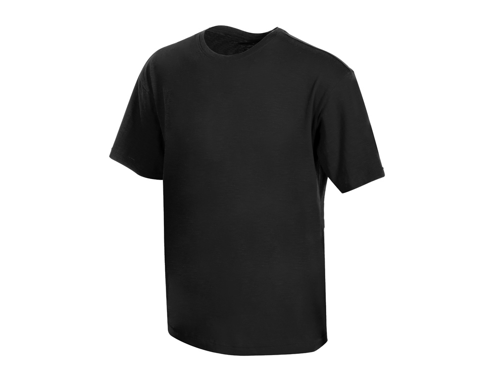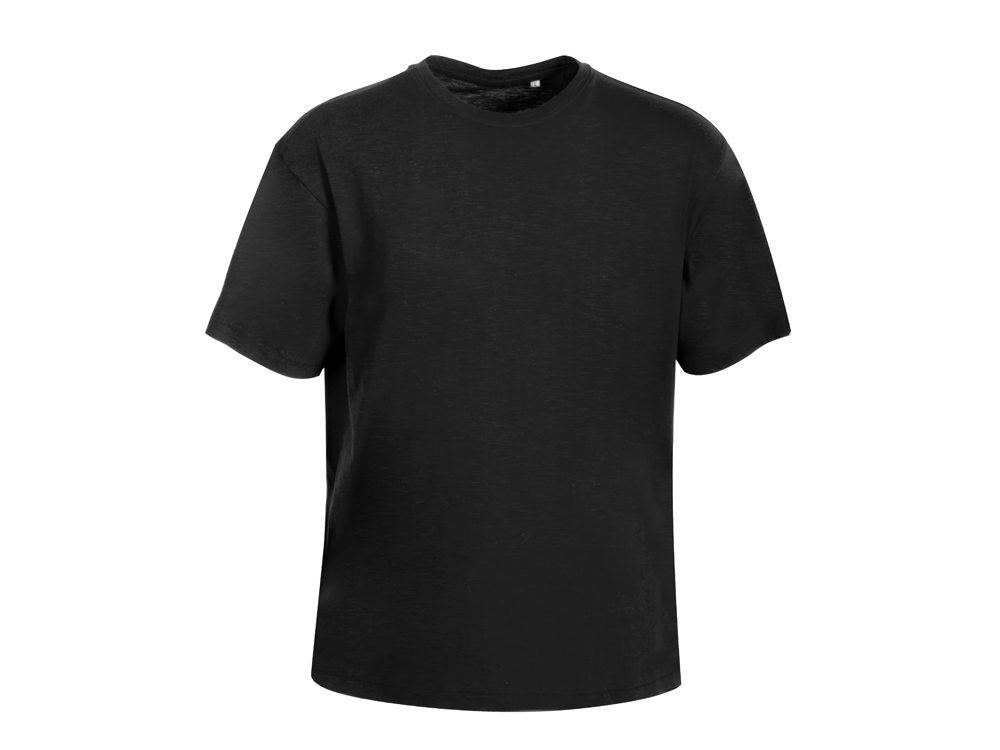 Полотно футболки имеет необычную структуру - с протяжками, но при этом гладкую поверхность, что обеспечивает идеальную поверхность для нанесения: прямая печать, трафаретная или термотрансфер прекрасно ложатся на такое полотно. Декоративная отстрочка по низу рукавов и изделия, а также отстрочка по горловине позволяют футболке дольше сохранять форму.