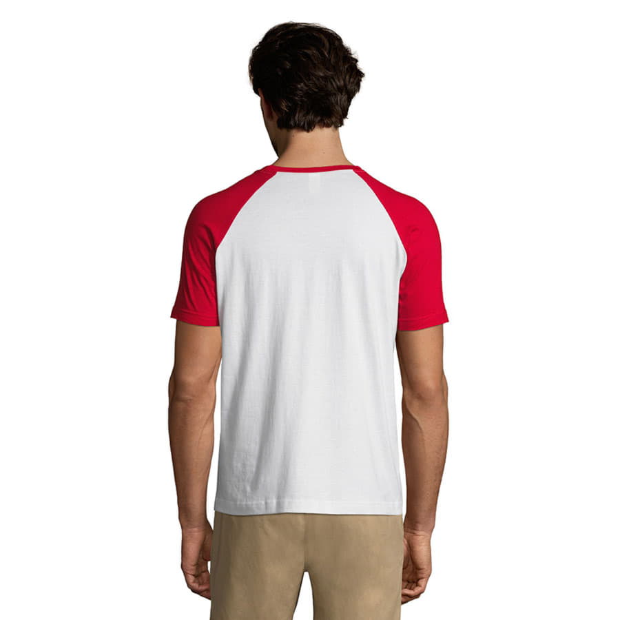 Цвет, близкий к Pantone 200C    Двухцветная мужская футболка FUNKY является идеальной парой к женской футболке MILKY. Благодаря констрастирующим цветным коротким рукавам реглан она выглядит оригинально и стильно, а отсутствие боковых швов обеспечивает широкое поле для печати любого креатива. По цветному вороту проложена укрепляющая тесьма, край ворота отделан резинкой с эластаном.    Материал – натуральный полугребенный хлопок плотностью 150 г кв.м. Футболка отлично подходит под нанесение логотипа, особенно в цвет ярких деталей. Применение качественных красителей в материалах, используемых при производстве, делают ткань стойкой к выцветанию.    Безукоризненное чувство стиля, высокое качество материалов и исполнения приближают эту модель Sol’s к лучшим образцам одежды.