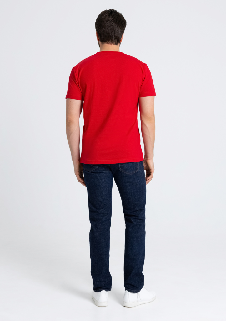 Размер мужской футболки: 52/XL. Параметры модели: рост 190 см.; обхват груди 108 см.; обхват талии 87 см.; обхват бедер 104 см.