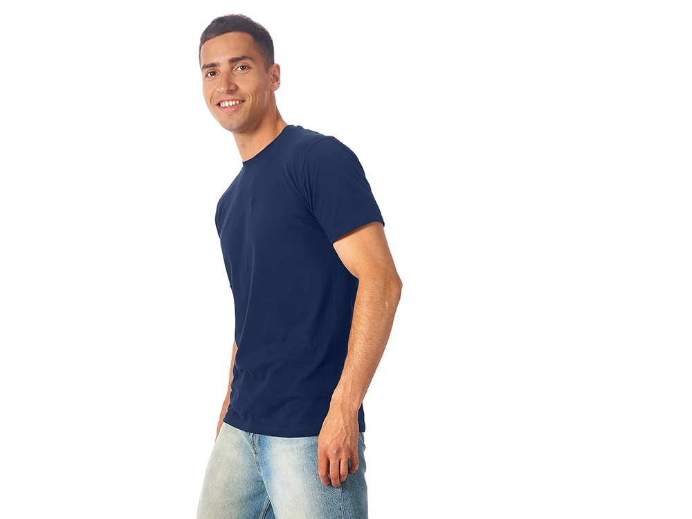 Мужская футболка сшита из натурального хлопка без боковых швов. Отлично подходит для нанесения рекламной информации. Возможна вышивка или трафаретная печать. Натуральный материал не вызывает раздражения кожи.