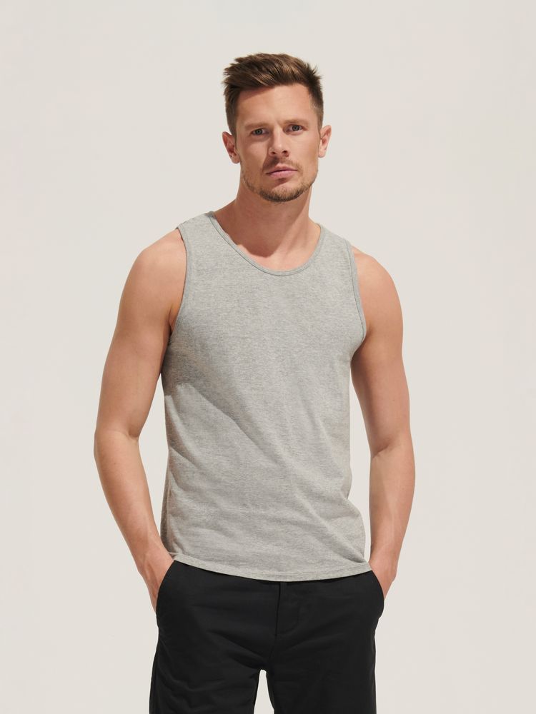 Кроеная мужская майка из полугребенного хлопка. Горловина и проймы обработаны укрепляющей резинкой.Таблица размеров, см S