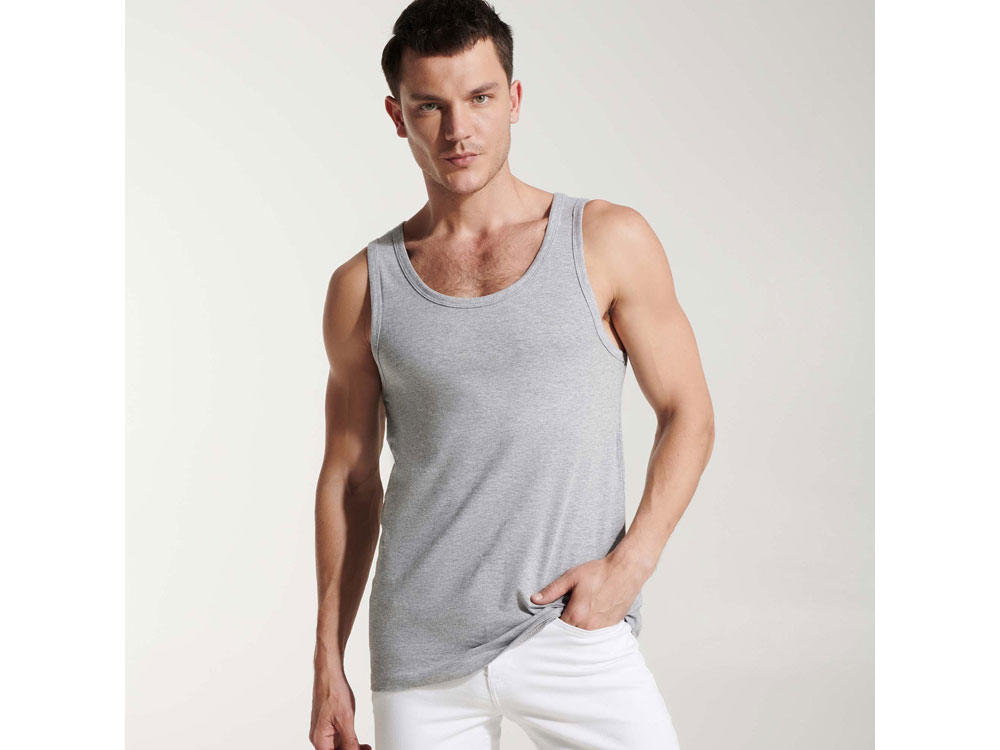 Мужская майка прилегающего силуэта. Отделка по горловине и проймам обтачкой из джерси. -