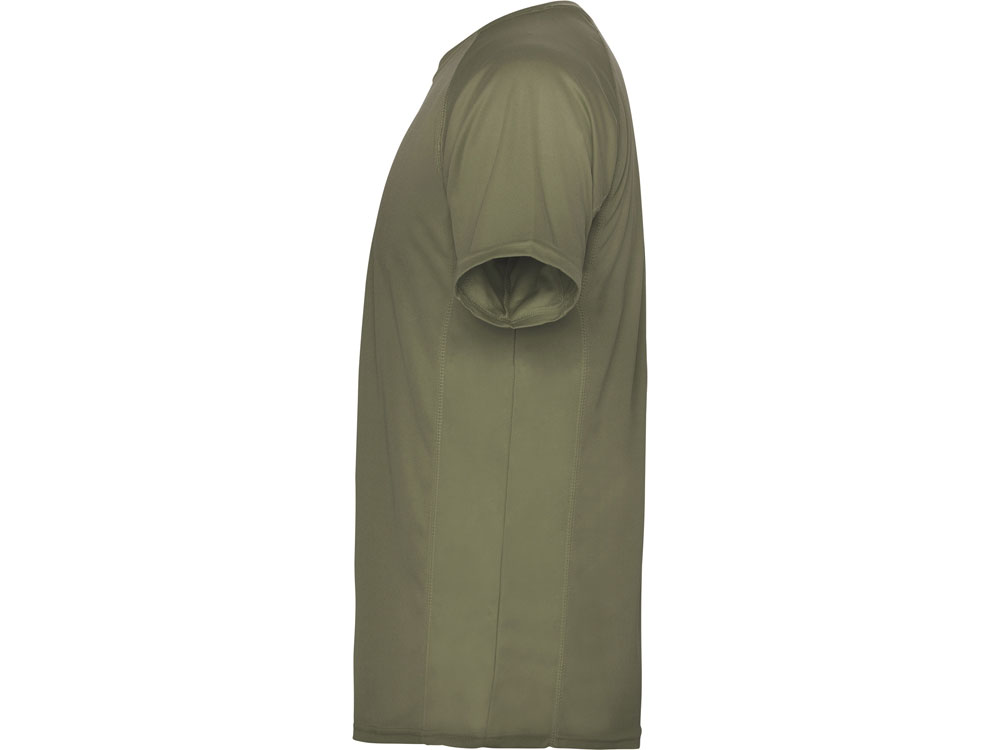 Спортивная мужская футболка с коротким рукавом реглан. Круглый вырез горловины и боковая вставка с отстрочкой плоским швом.