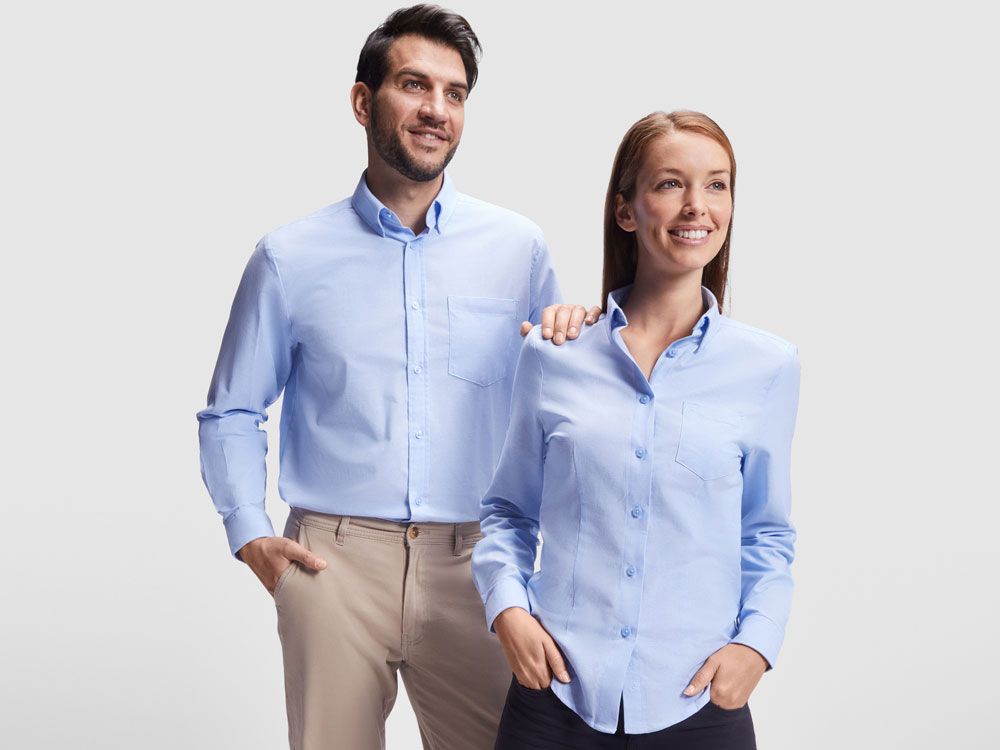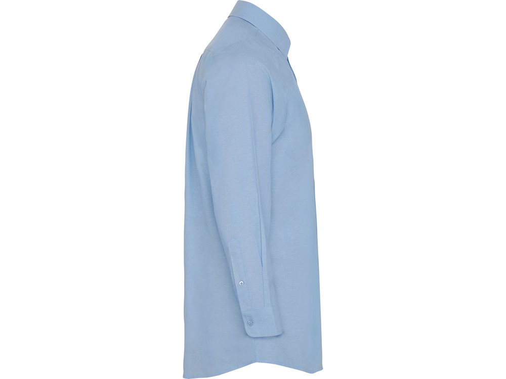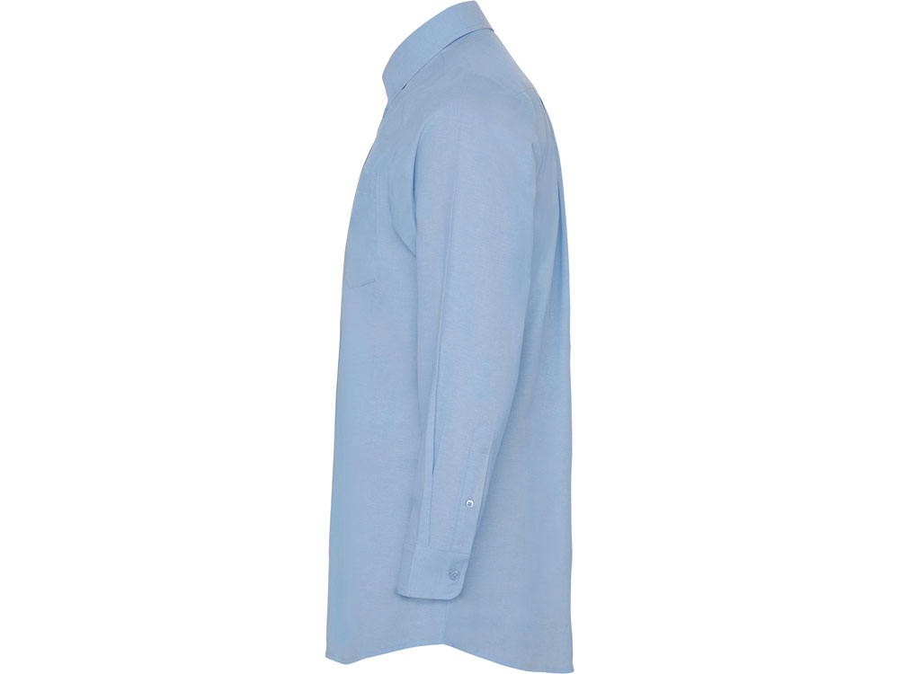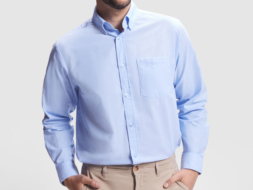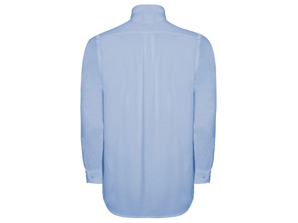 Мужская рубашка с длинным рукавом, накладной карман слева. Планка на пуговицах. Отложной воротник на стойке. Манжета регулируется по ширине с помощью 2-х пуговиц. Кокетка на спинке. -