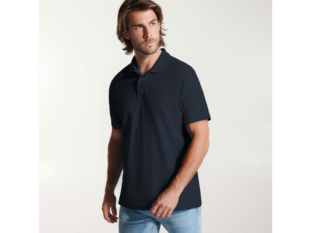 Поло с коротким рукавом, воротник из риба 1х1, планка застегивается на 3 пуговицы. -