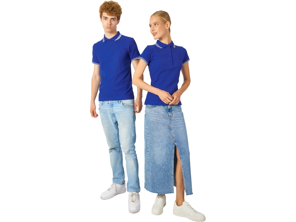 Рубашка-поло Erie с окантовкой. Воротник и манжеты резинка 1х1. Мужская модель с двумя пуговицами, женская - 4 пуговицы в тон изделия. Обшивка внутри воротника. Женская модель с разрезами по бокам. Женская модель приталена. Пике, 100% чесаный хлопок. Плотность 180 г/м2. -