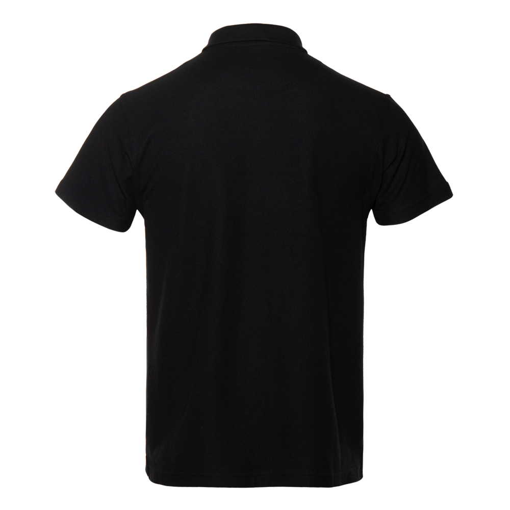 Поло выполнено из фактурной смесового ткани (65% хлопок, 35% полиэстер), благодаря чему изделие хорошо пропускает воздух и практически не мнется.