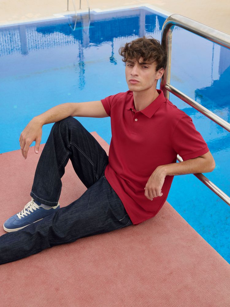 Рубашка поло унисекс прямого силуэта.- Усиленная планка с двумя перламутровыми пуговицами