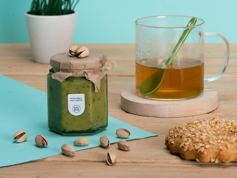 Крем-мёд это настоящий десерт для сладкоежек. Благодаря своей структуре он идеально подходит как топпинг, который легко намазать и не бояться, что он растечется по тарелке. Фисташка придает крем-мёду нежнейший вкус крема-пралине. -