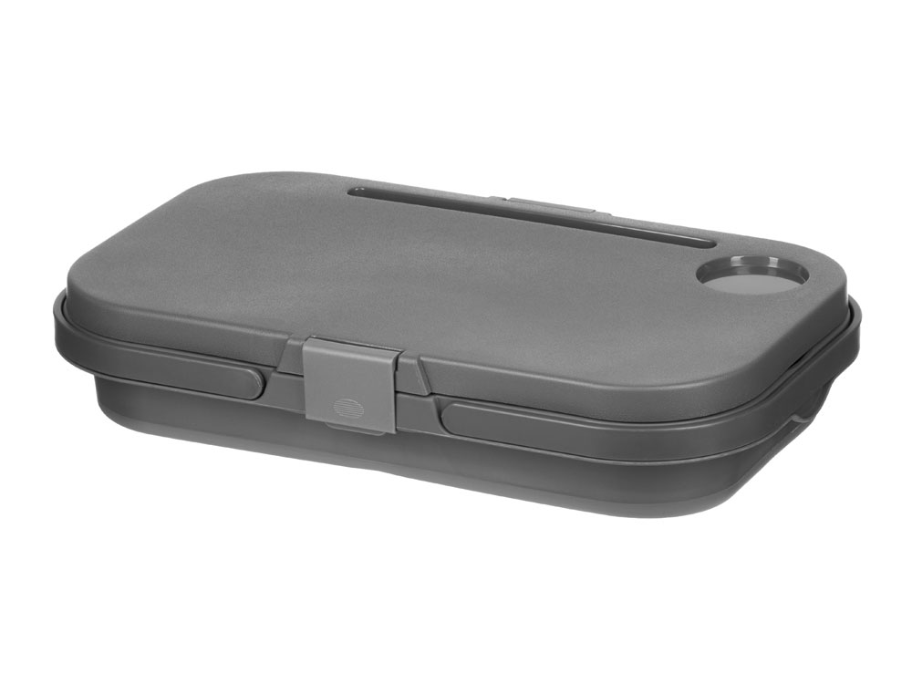 Крышка этой корзинки для пикника превращается в удобный столик буквально по щелчку пальцев: для этого нужно просто снять ее и разложить металлические ножки. На этом магия корзинки не заканчивается — силиконовый корпус складывается, что очень удобно, когда пикник закончен, и все содержимое съедено.