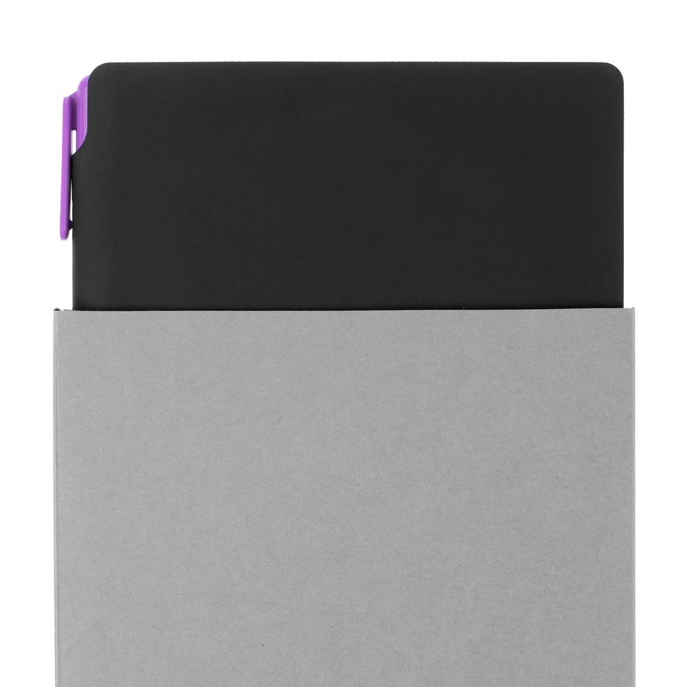 Удобный ежедневник с гибкой обложкой и местом под ручку в корешке, миниатюрная ручка из переработанного пластика и компактная самосборная коробка — простые составляющие полезного делового набора. -
