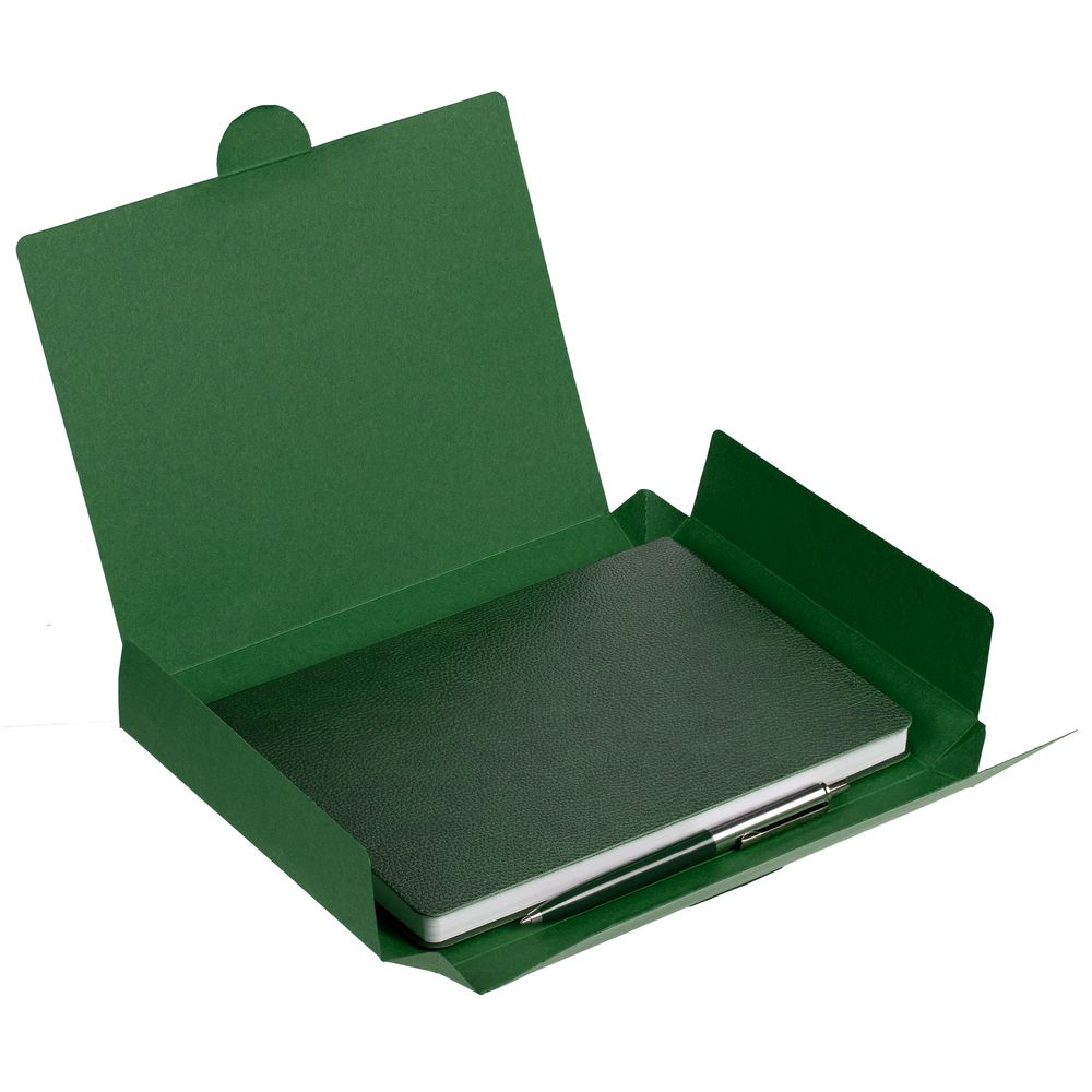 Недатированный ежедневник с гибкой обложкой из фактурного материала La Fite и металлическим шильдом на ляссе и ручка в тон, упакованные в подарочную коробку из дизайнерского картона. -