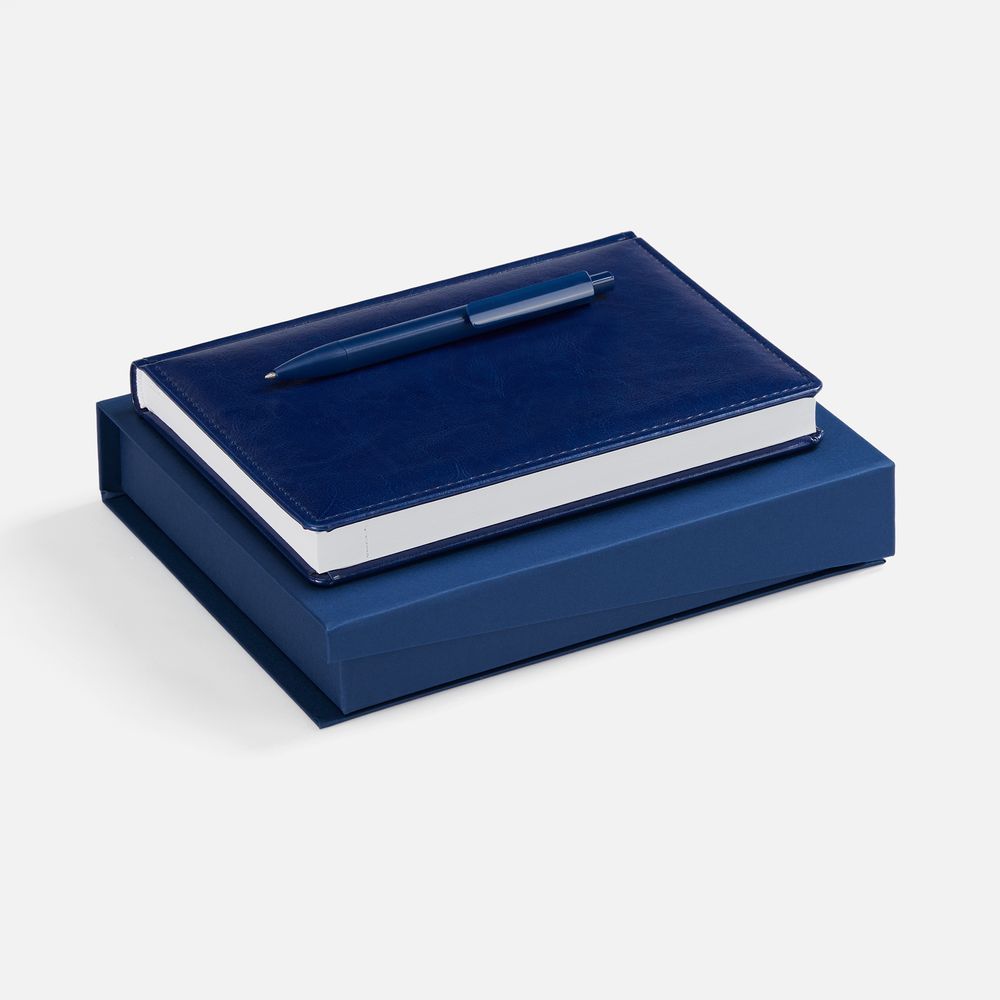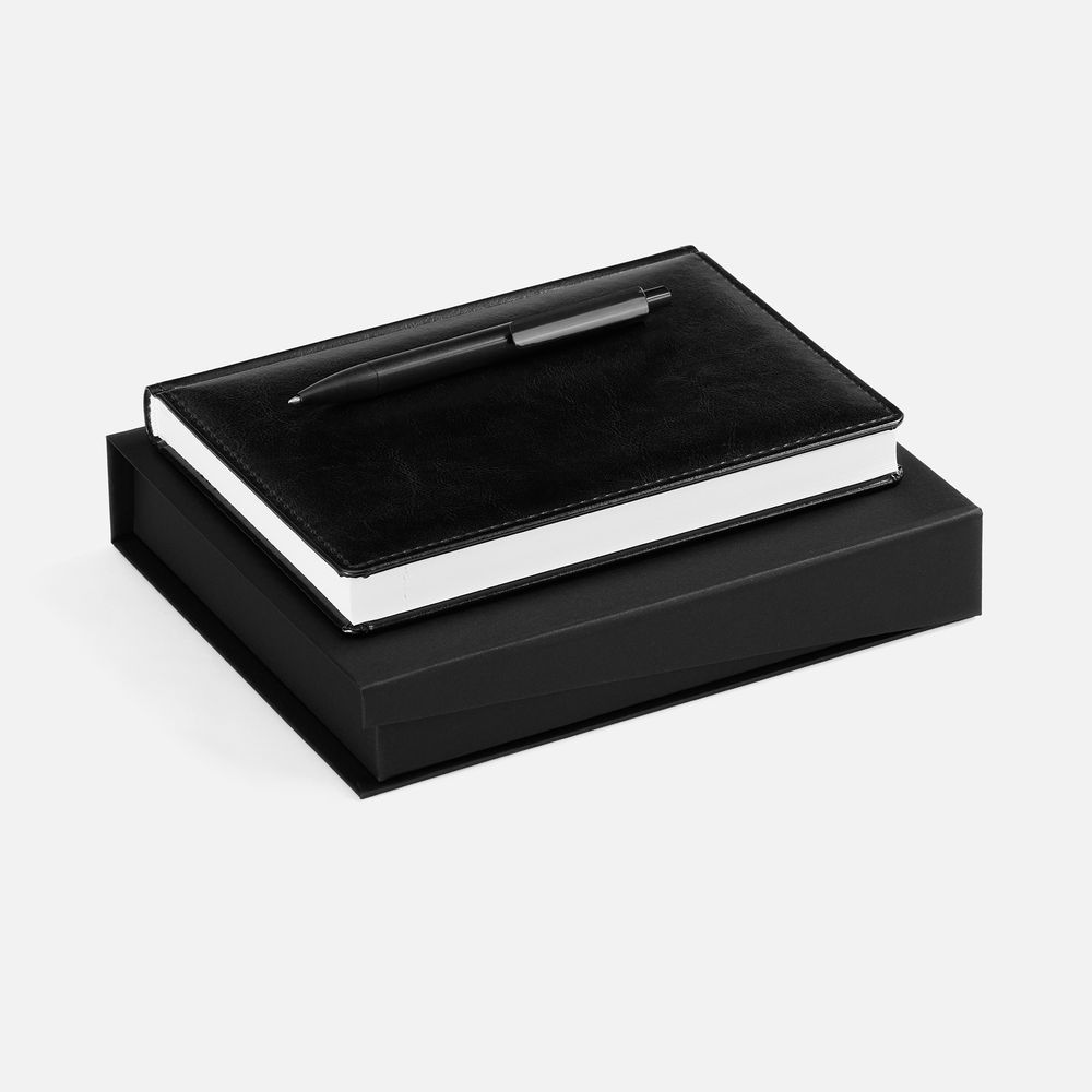 Две самые классические модели в одном деловом наборе: ежедневник Nebraska с «пухлой» обложкой и ручка Raja — кажется, они никогда не выйдут из моды. -