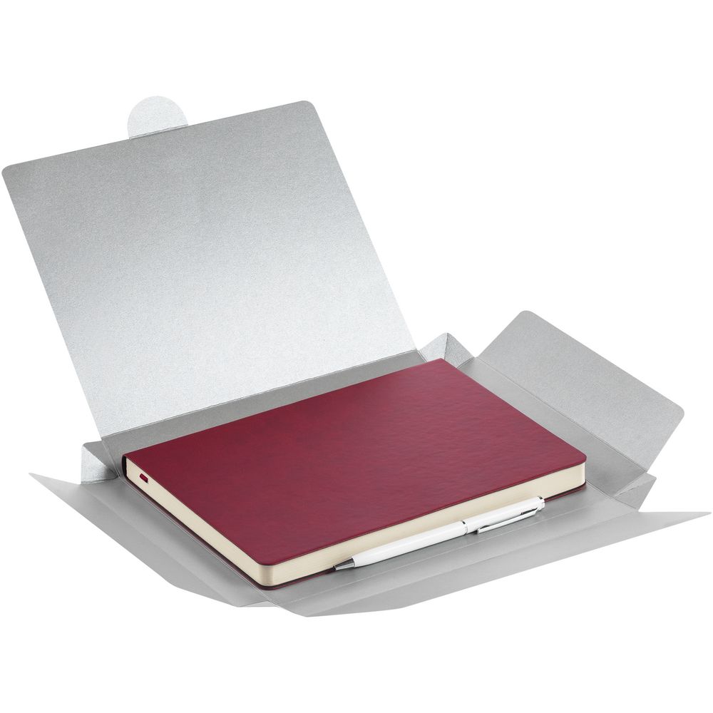 Недатированный ежедневник с гибкой обложкой из материала Latte с ляссе в цвет обложки, а также ручка в тон — в подарочной коробке из дизайнерского картона. -