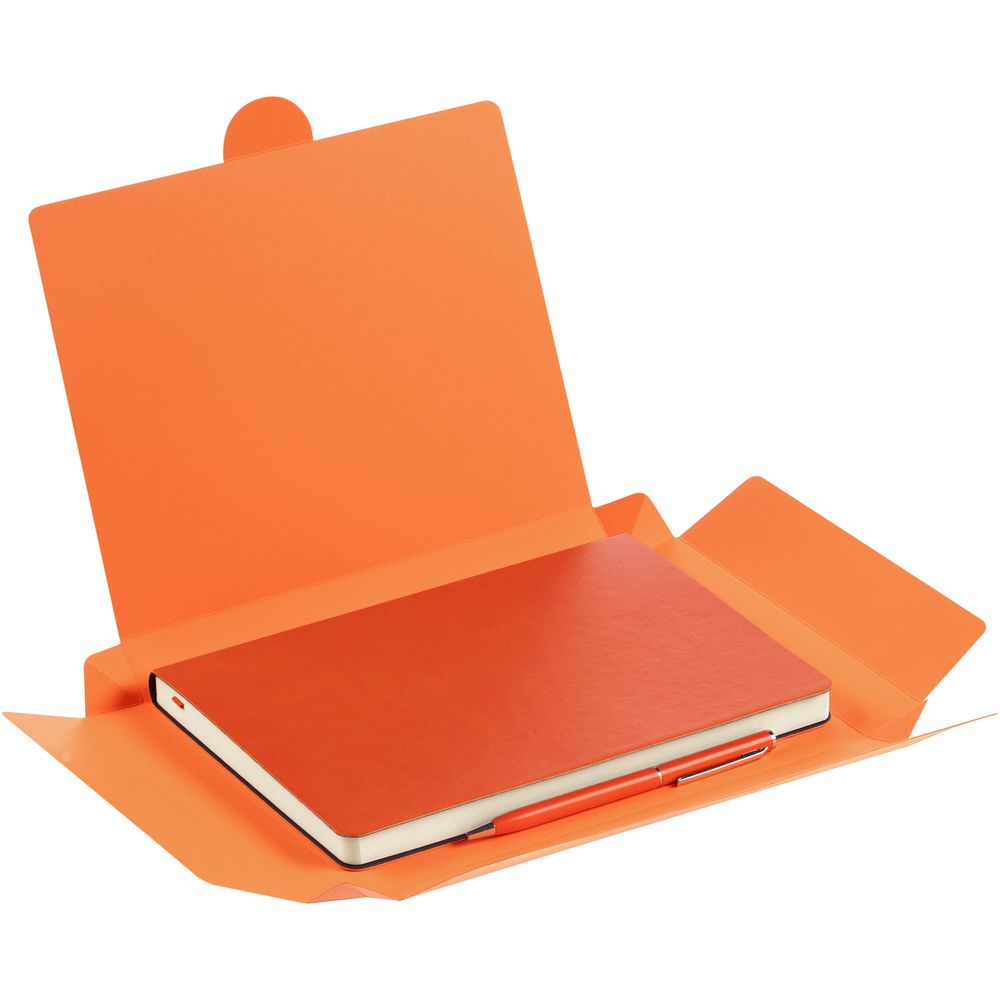 Недатированный ежедневник с гибкой обложкой из материала Latte с ляссе в цвет обложки, а также ручка в тон — в подарочной коробке из дизайнерского картона. -