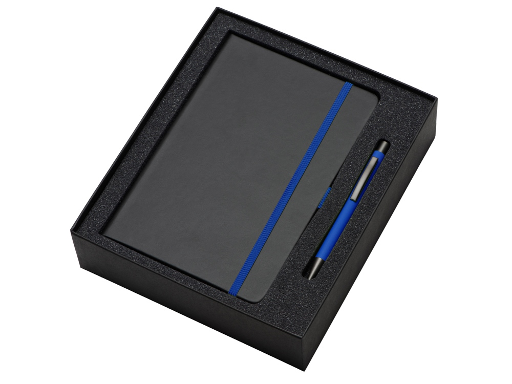 блокнот - искусственная кожа, бумага, ручка - металл с покрытием софт-тач, коробка - кашированный картон