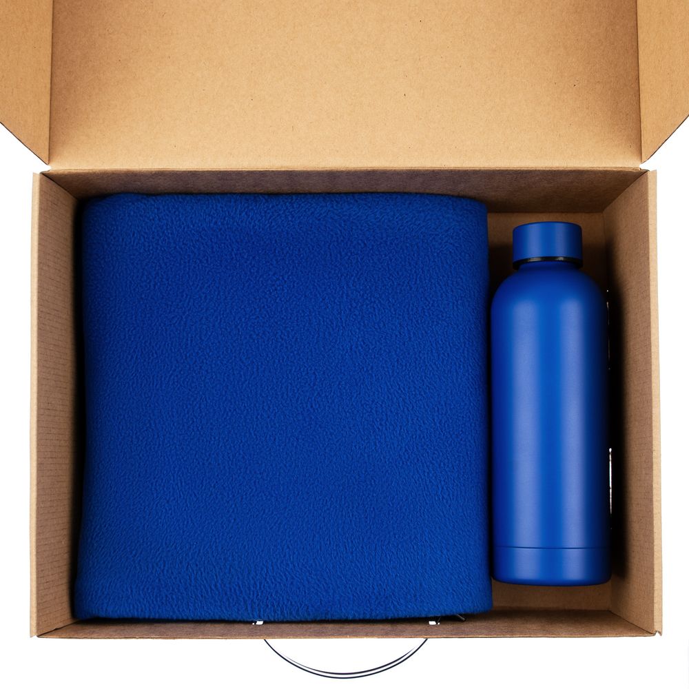 бутылка для воды - металл; пластик; плед - флис; коробка - микрогофрокартон; пластик
