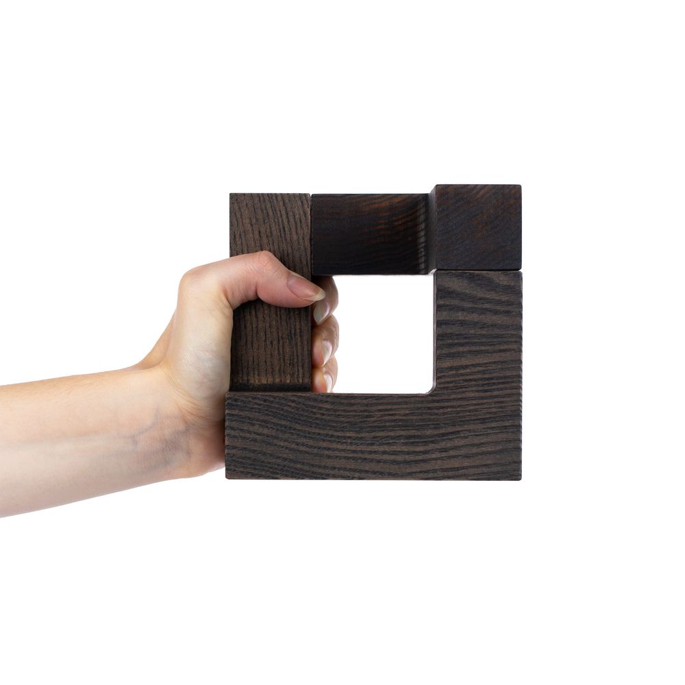 Продуманная конструкция из трех деревянных деталей на магнитах позволяет собрать необычный трехмерный куб, который в зависимости от угла зрения словно меняет свою форму. Потому такой стелой особо символично отметить уникальные качества и достижения награждаемого: профессиональные успехи, личные победы, огромный вклад в развитие команды и общества или нестандартный подход к решению задач.