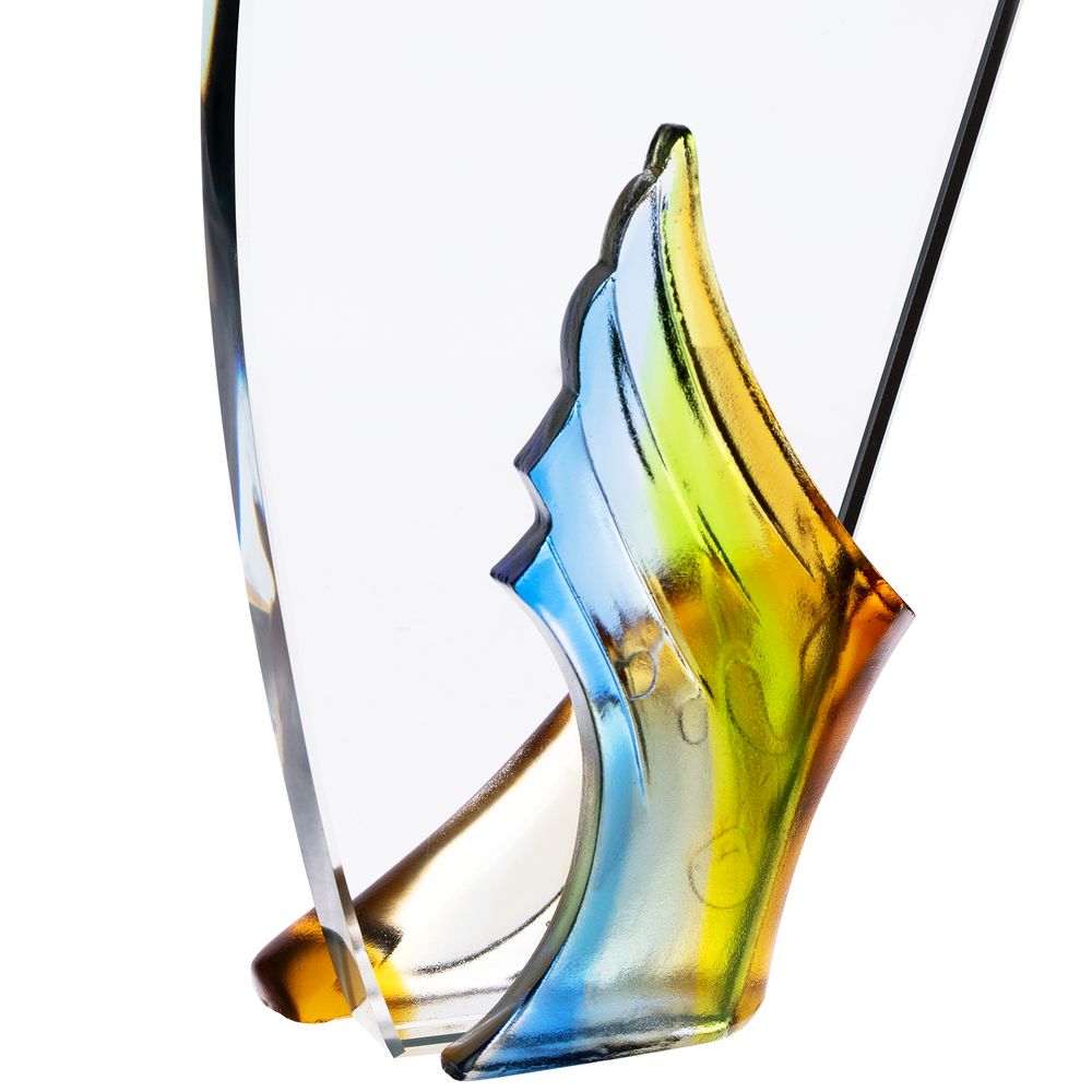Стела изготовлена из стекла К9, в основе которого лежит оптическое боросиликатное стекло. Эту марку стекла отличает низкий процент посторонних включений, высокий показатель преломления и высокая прозрачность — идеальные качества для изготовления наград премиального уровня.Fair Wind. Лучшее пожелание в любом деле.