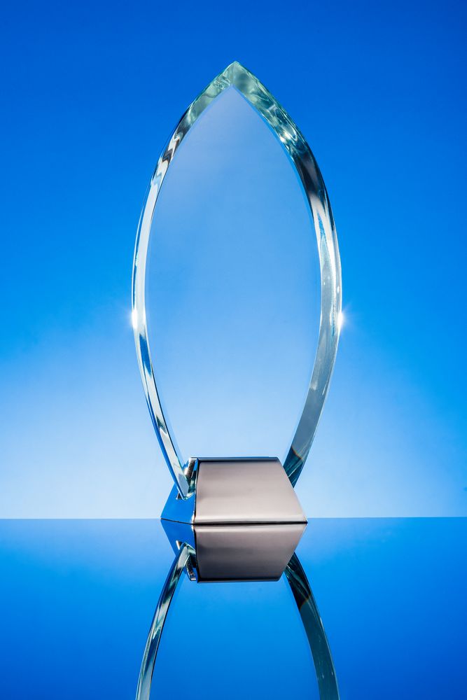 Конструкция награды разъемная: стеклянную часть стелы при необходимости можно вынуть из основания. -