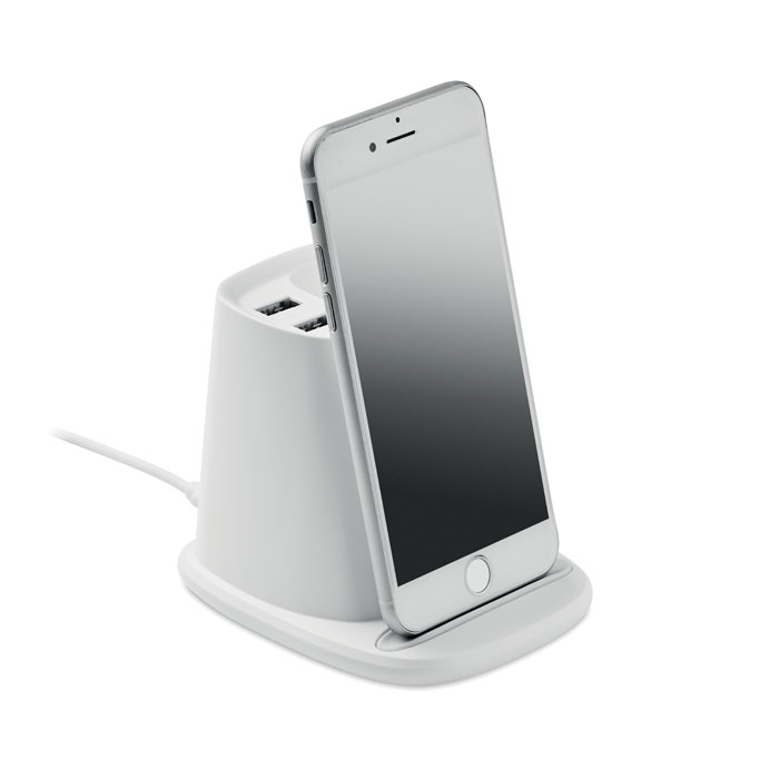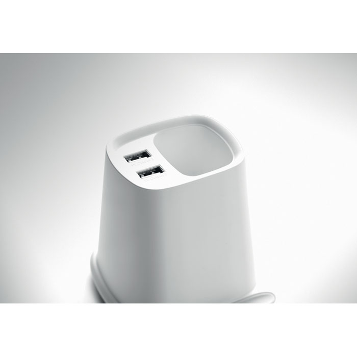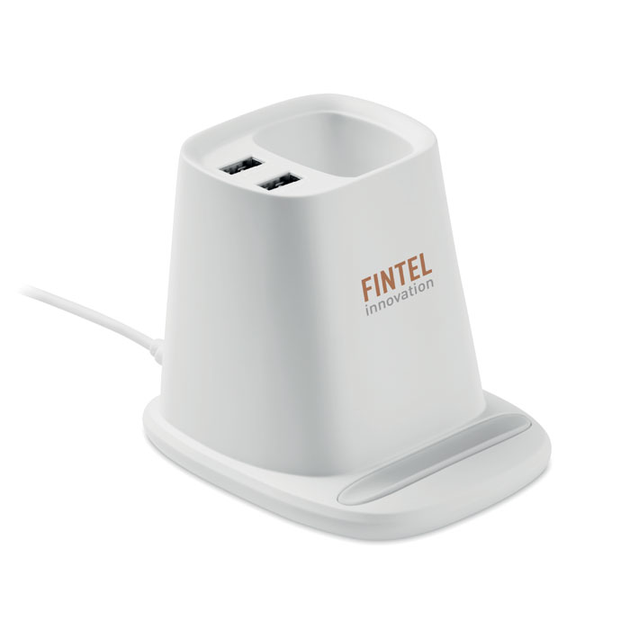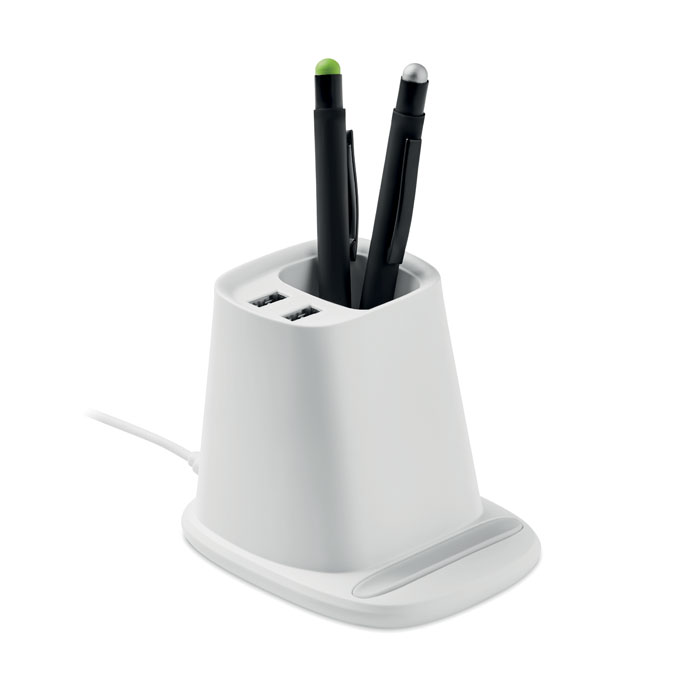Настольная подставка для ручек и смартфона с беспроводной зарядкой 10 Вт и 2 портами USB. Выход: DC 9V/1.1A (10W) для быстрой зарядки. Совместим с последними моделями Androids, iPhone® 8, X и новее.