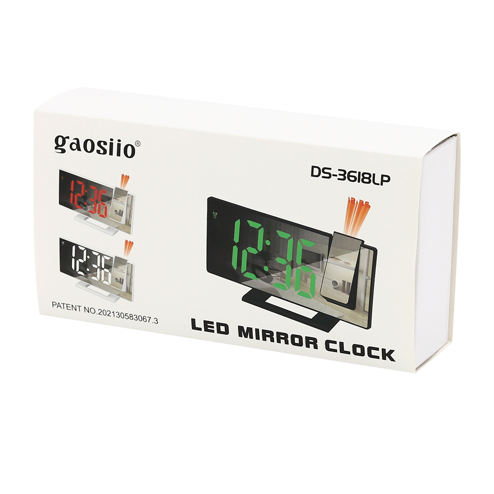 Зеркальная панель и поворотный механизм для проецирования времени в часах Omix делает их практичным помощником в квартире или офисе. Направляйте проектор в то место, которое вам доступно, чтобы видеть время ночью или ранним утром. Большой цветной дисплей отображает максимум ифнормации. Размер в упаковке: 19,3*10,5*5 см. Функции: Время / Температура / Будильник- Виды нанесений: Тампопечать большая