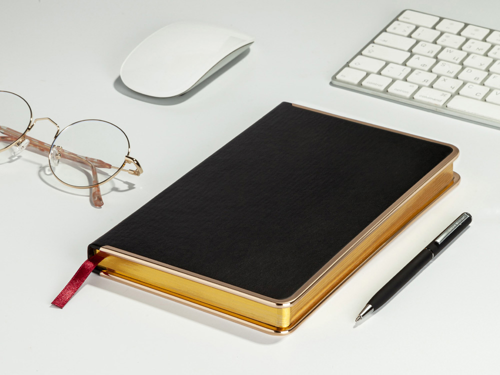 Недатированный ежедневник Chelsea от бренда Bruno Visconti - это качественный корпоративный подарок по выгодной цене, произведенный специально под персонализацию. Представлен в универсальном формате А5. Деловой аксессуар, напоминающий об эпохе расцвета Голливуда, в элегантной неповторимой манере преподносит привычные классические формы. Твердая обложка оформлена металлическим кантом по всему периметру. С ним хорошо сочетается металлизированный обрез.