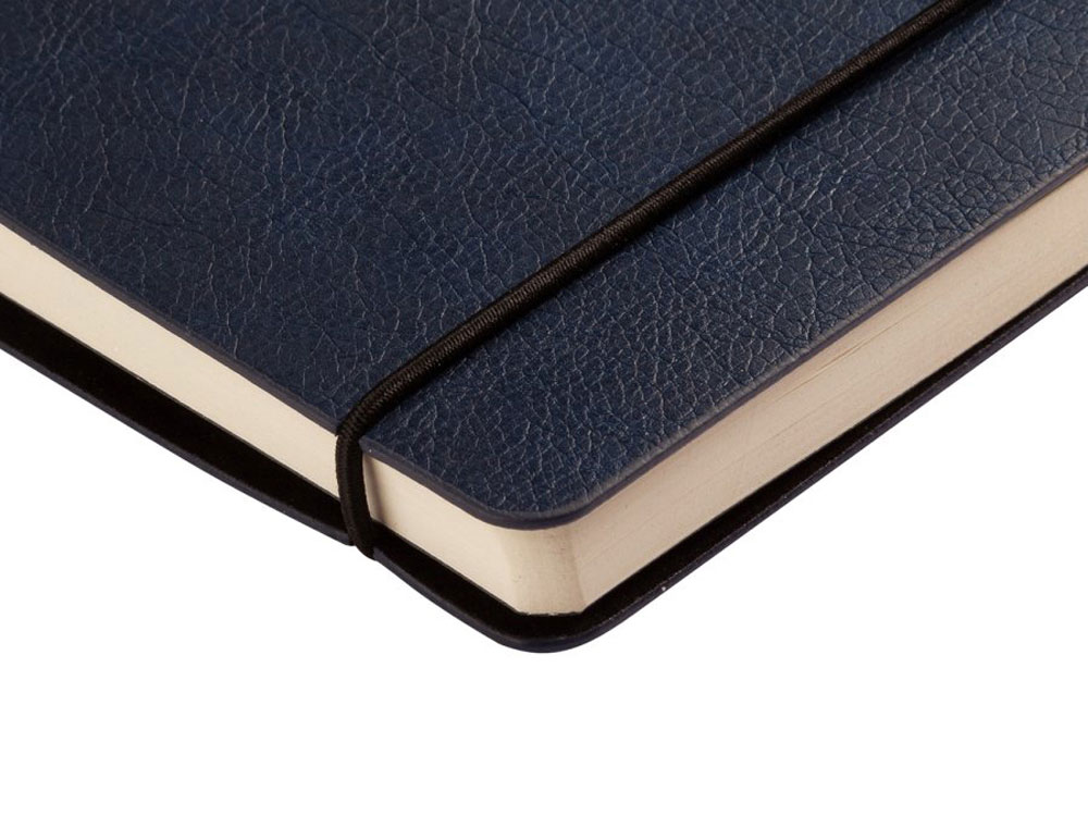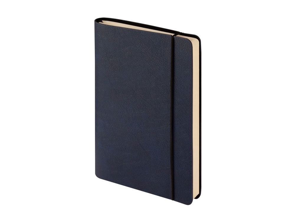 Отличительной особенностью ежедневника является горизонтальная, скрепляющая обложку и блок, тоненькая резинка. Оригинальное решение позволяет раскрывать ежедневник на 180 градусов и вести записи у самого края корешка. Для фиксации второй резинки, не позволяющей ежедневнику раскрываться, предусмотрена выемка на обложке. Обложка тонка, но фактурность придает ей элемент брутальности, а бархатистое нанесение на ее оборотной стороне- благородство и статусность. Картонный карман для визиток, записок, бумаг – функциональная деталь и приятная дополнительная опция. Бумажный блок изготовлен из бумаги бежевого цвета, плотностью 70 г/кв.м и содержит 272 страницы, 23 из которых справочная информация. -