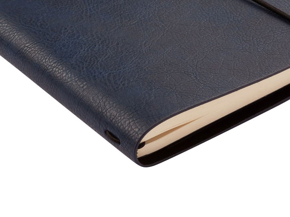 Отличительной особенностью ежедневника является горизонтальная, скрепляющая обложку и блок, тоненькая резинка. Оригинальное решение позволяет раскрывать ежедневник на 180 градусов и вести записи у самого края корешка. Для фиксации второй резинки, не позволяющей ежедневнику раскрываться, предусмотрена выемка на обложке. Обложка тонка, но фактурность придает ей элемент брутальности, а бархатистое нанесение на ее оборотной стороне- благородство и статусность. Картонный карман для визиток, записок, бумаг – функциональная деталь и приятная дополнительная опция. Бумажный блок изготовлен из бумаги бежевого цвета, плотностью 70 г/кв.м и содержит 272 страницы, 23 из которых справочная информация.