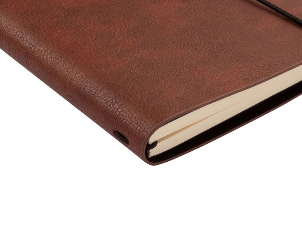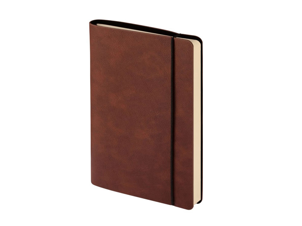 Отличительной особенностью ежедневника является горизонтальная, скрепляющая обложку и блок, тоненькая резинка. Оригинальное решение позволяет раскрывать ежедневник на 180 градусов и вести записи у самого края корешка. Для фиксации второй резинки, не позволяющей ежедневнику раскрываться, предусмотрена выемка на обложке. Обложка тонка, но фактурность придает ей элемент брутальности, а бархатистое нанесение на ее оборотной стороне- благородство и статусность. Картонный карман для визиток, записок, бумаг – функциональная деталь и приятная дополнительная опция. Бумажный блок изготовлен из бумаги бежевого цвета, плотностью 70 г/кв.м и содержит 272 страницы, 23 из которых справочная информация.