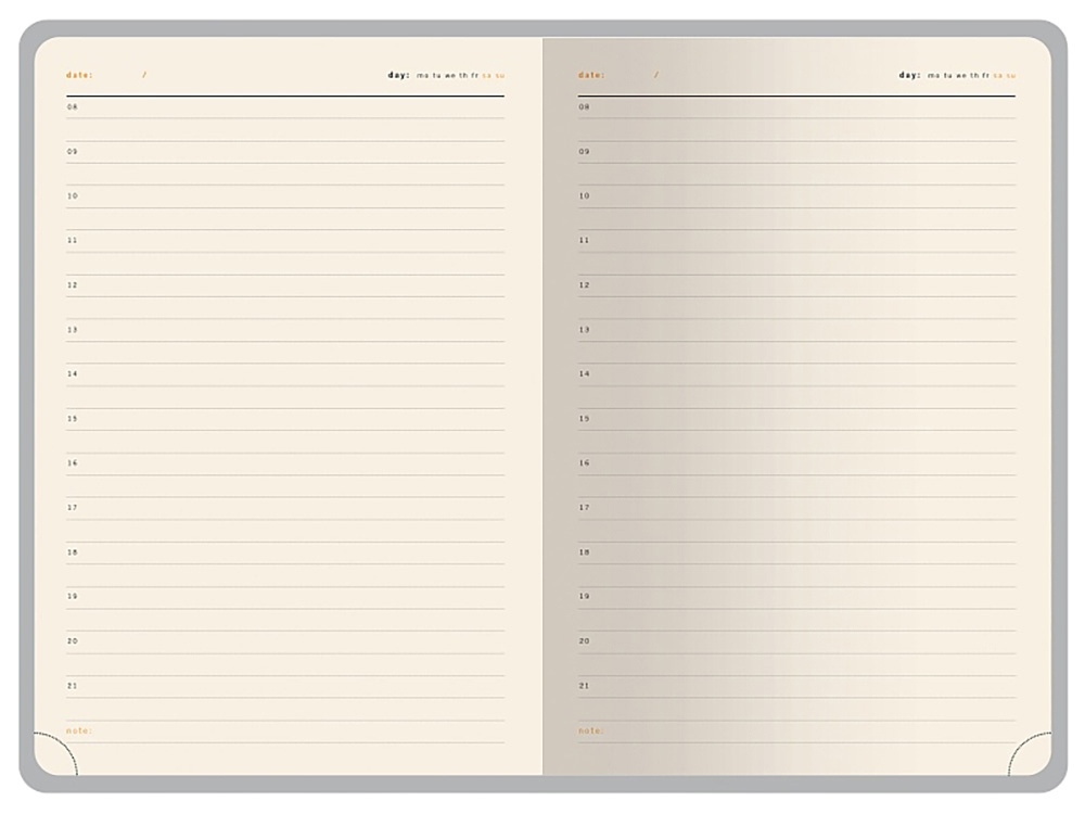 - твердая обложка из высококачественной экокожи с декоративной нитью по периметру в тон ежедневника;