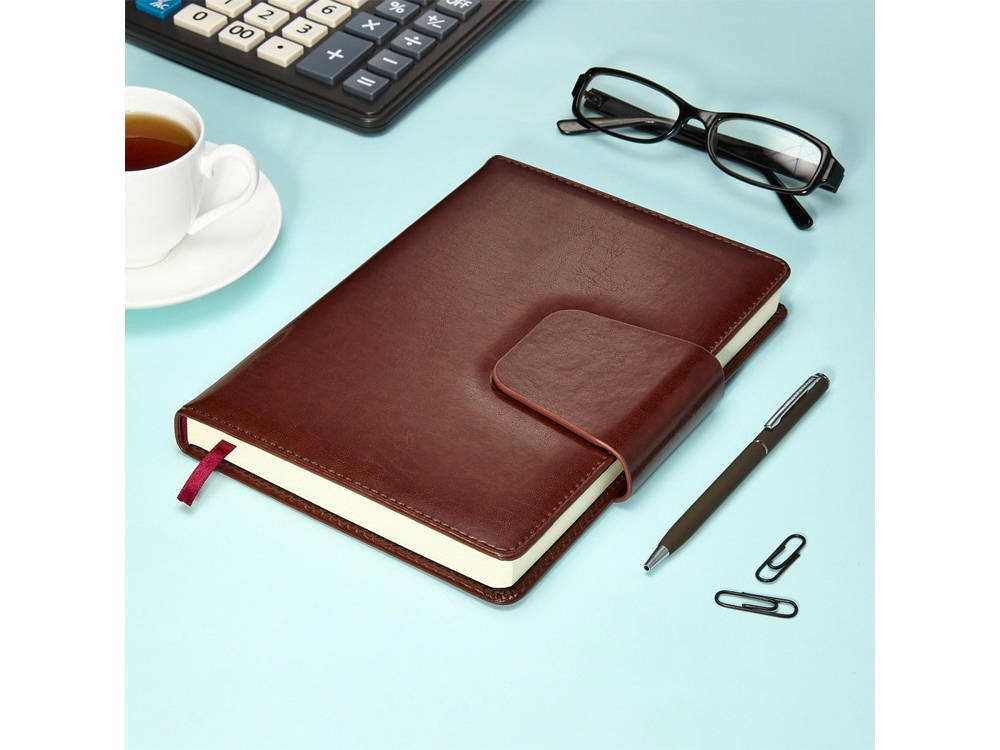 Недатированный ежедневник Prestige от бренда Bruno Visconti - это качественный корпоративный подарок по выгодной цене, произведенный специально под персонализацию. Представлен в универсальном формате А5 и содержит 320 страниц. Не лишенный солидности и респектабельности новый ежедневник Prestige от Bruno Visconti идеально дополняет имидж современных профессионалов. Твердая обложка выполнена из гладкого кожзама, неотличимого от кожи fiore vegetale. Скругленный корешок и уголки обложки в сочетании с магнитным клапаном делают ежедневник Prestige невероятно стильным аксессуаром. Глянцевая поверхность материала акцентирована контрастной белой строчкой вдоль закругленного края. Функциональная деталь - широкий магнитный клапан. Декоративный хлястик надежно фиксирует блок, исключая случайное раскрывание в сумке.