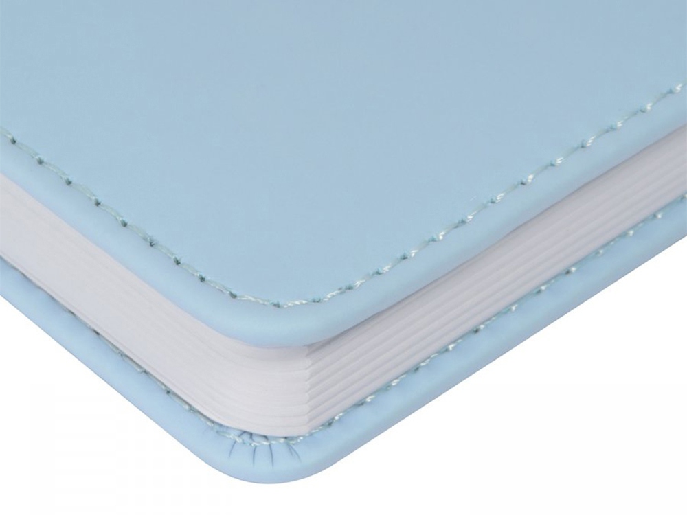 Твердая обложка со слегка закругленными уголками выполнена из гладкого переплетного материала с приятной на ощупь поверхностью soft-touch. По контуру обложки проходит строчка, делающая акцент на форме ежедневника. Благодаря внутреннему набивному слою обложка выглядит объемнее и привлекательнее.