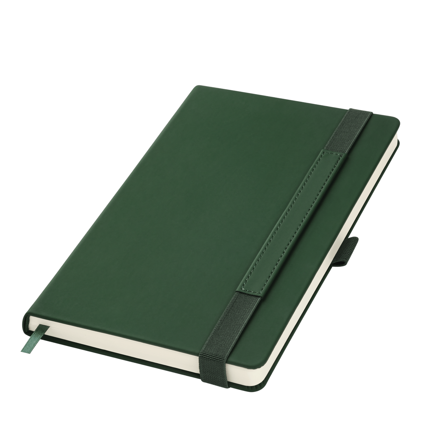 Вертикальная резинка-фиксатор с вставкой из ПУ-материала обложки и петелька под ручку, в цвет обложки