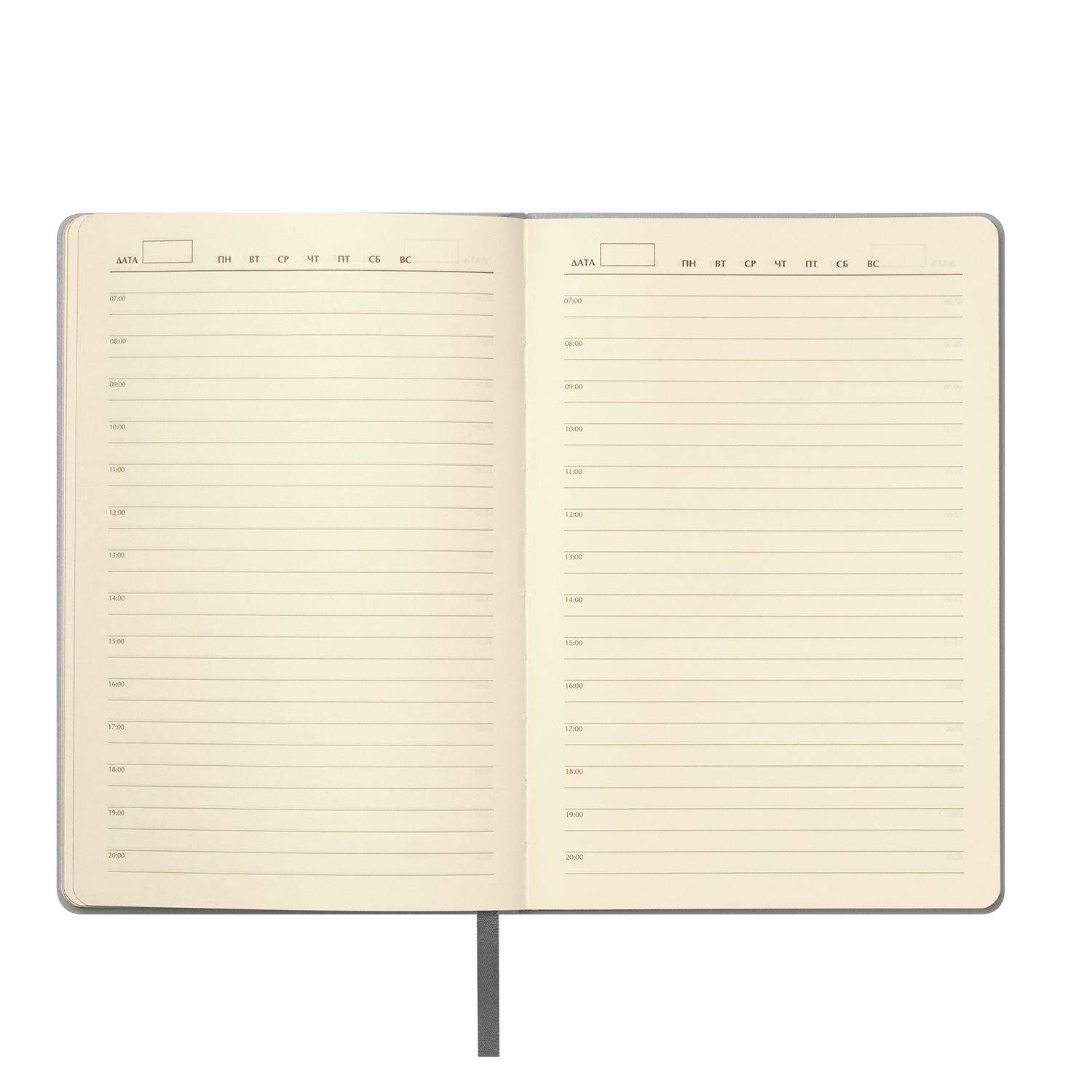 Недатированный ежедневник Molto в гибкой обложке из высококачественной искусственной кожи сочетает в себе практичность и стильный дизайн. Текстурированная матовая поверхность с деликатным рельефом имитирует натуральную кожу, а скругленные углы обложки и блока добавляют изящества.