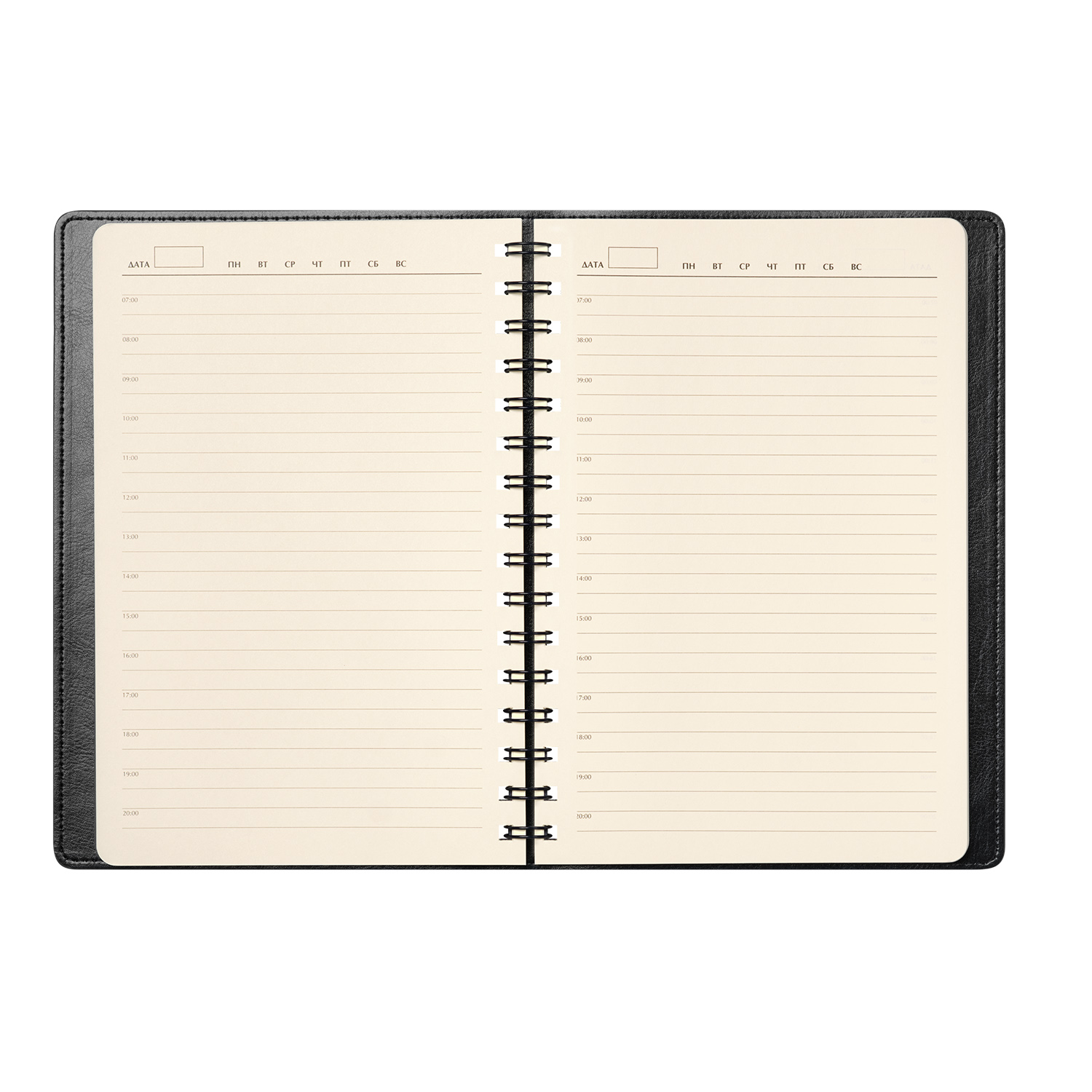 Надежная полускрытая пружина в цвет обложки обеспечивает удобство использования и долговечность. Этот ежедневник не только поможет вам эффективно планировать дела, но и станет стильным аксессуаром, подчеркивающим ваш индивидуальный стиль.