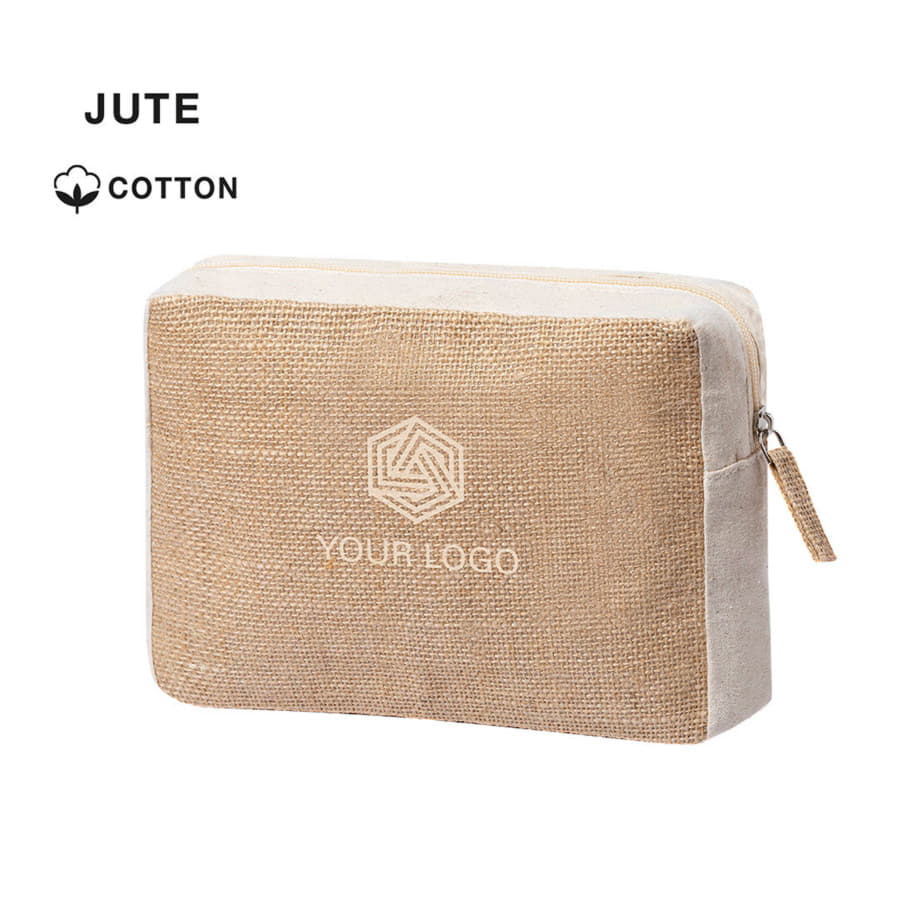 Косметичка из ламинированного джута и натурального хлопка. С застежкой-молнией и джутовым пулером. -