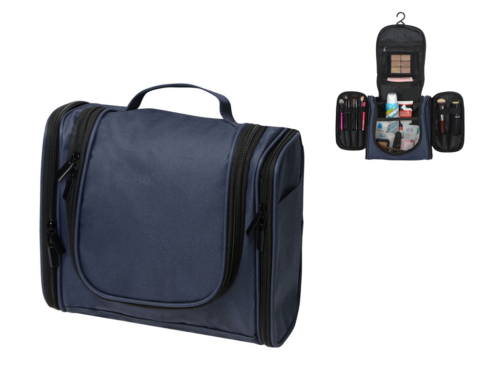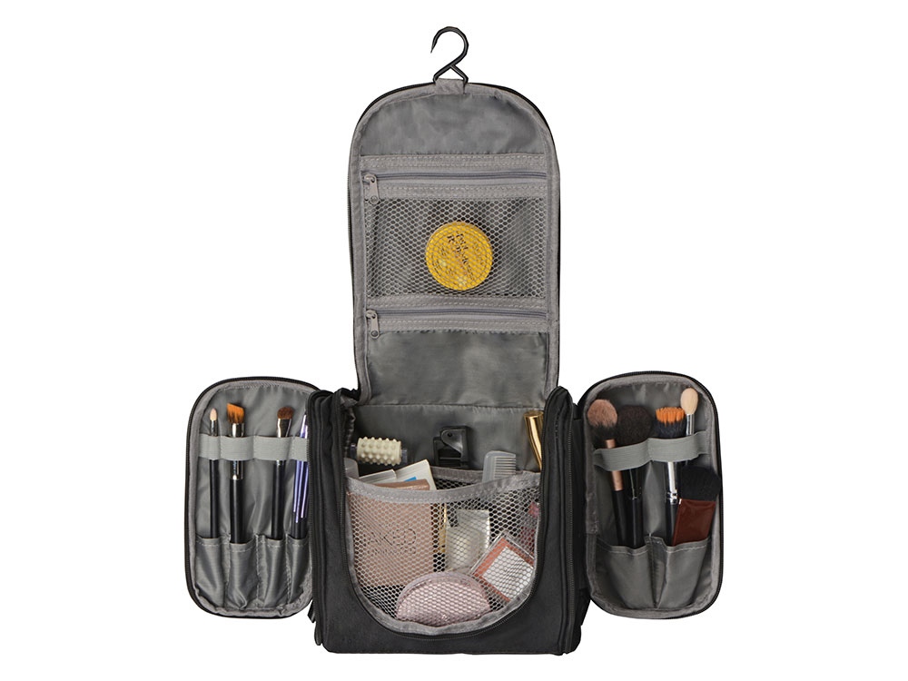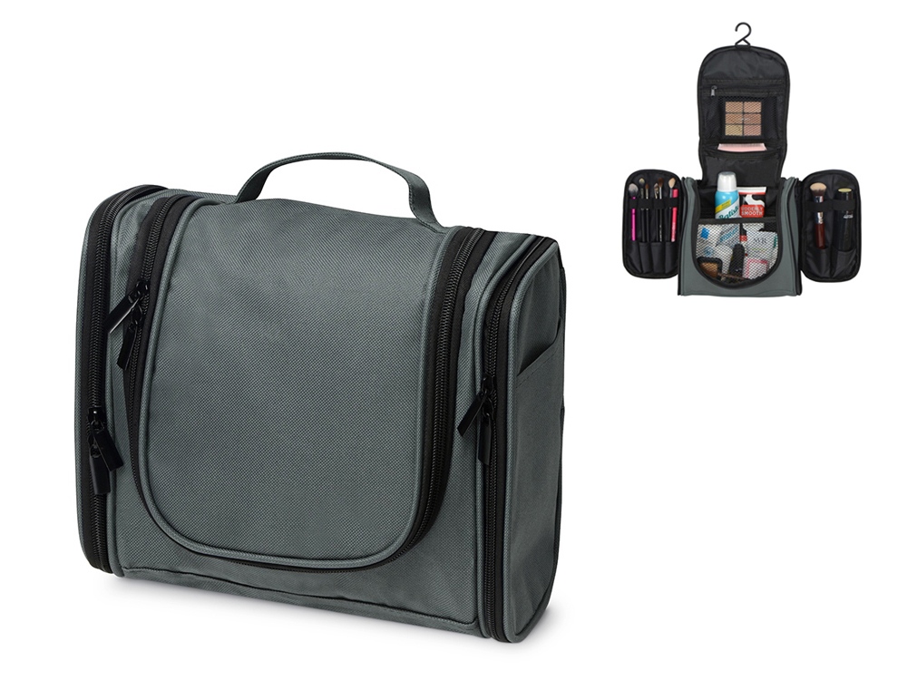 • Снабжен ручкой для удобства переноски и крючком, позволяющим подвесить несессер в ванной комнате гостиничного номера или любом другом месте -