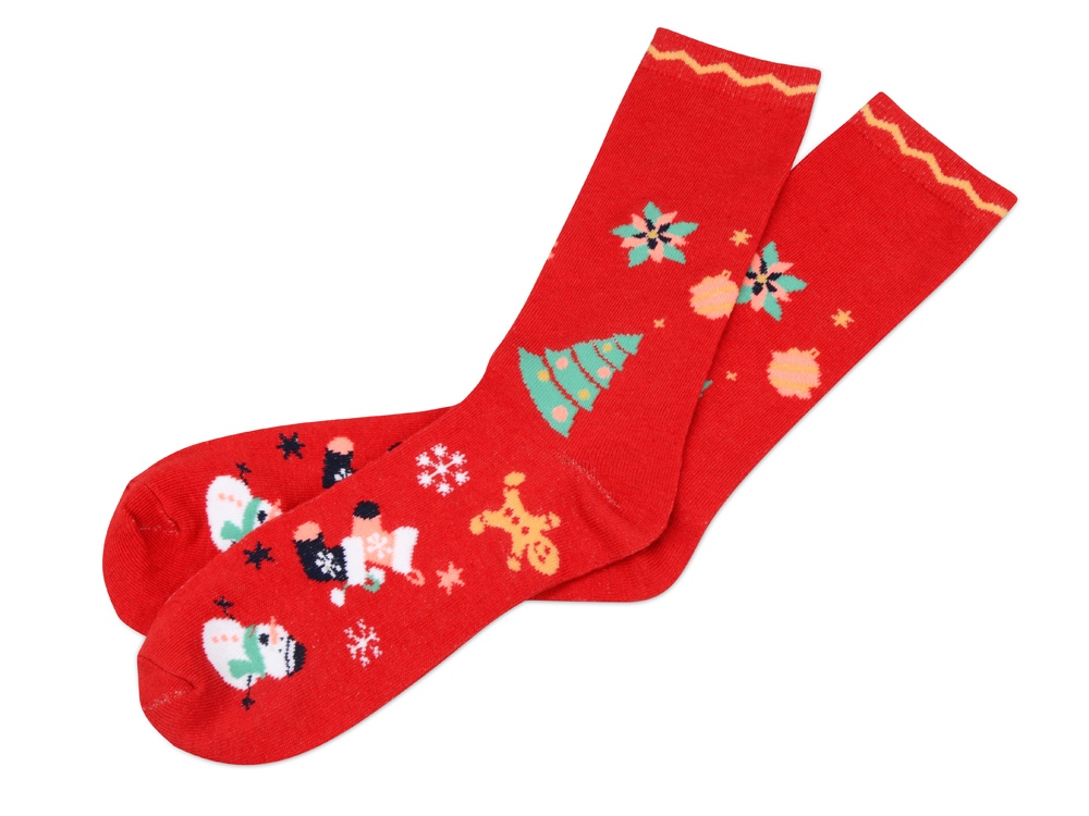 В фильмах на рождество принято вешать носки над камином, в которые Санта Клаус раскладывает подарки. Предлагаем вам новинку нашего каталога адаптированную для российской елки. Носки, упакованные в милый шарик, можно повесить на елку в качестве дополнительного подарка. Оригинальный дизайн с тематическими рождественскими принтами порадует как хипстера, так и приверженца офисного стиля. Яркие носки со строгим костюмом один из современных трендов. Дарите стильные новогодние подарки.