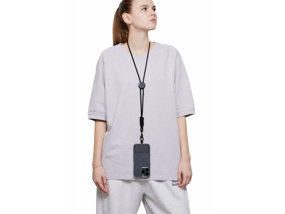 Прочный плетёный шнур устойчив к износу, а надежный карабин позволяет безопасно закрепить смартфон, бейдж, пропуск, ключи или другие необходимые аксессуары.