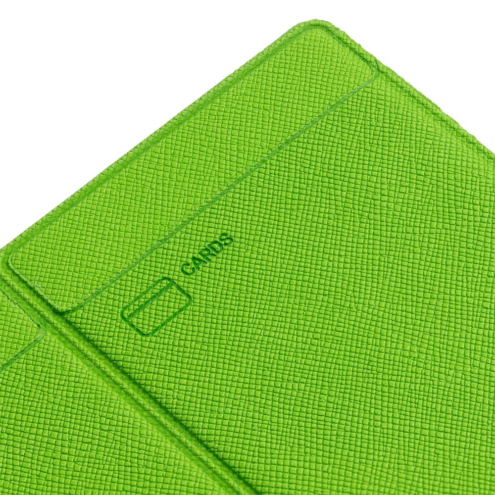 Обложка из искусственного материала, имитирующего сафьяновую кожу, с четырьмя карманами: для водительского удостоверения, свидетельства о регистрации, денег и пластиковых карт.