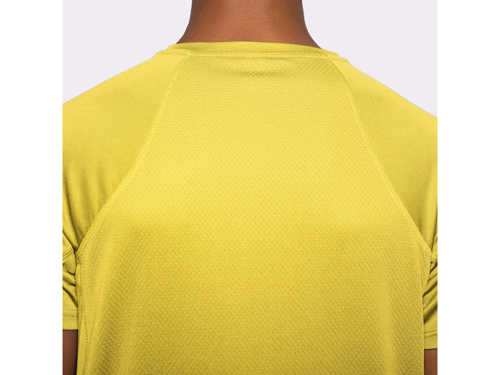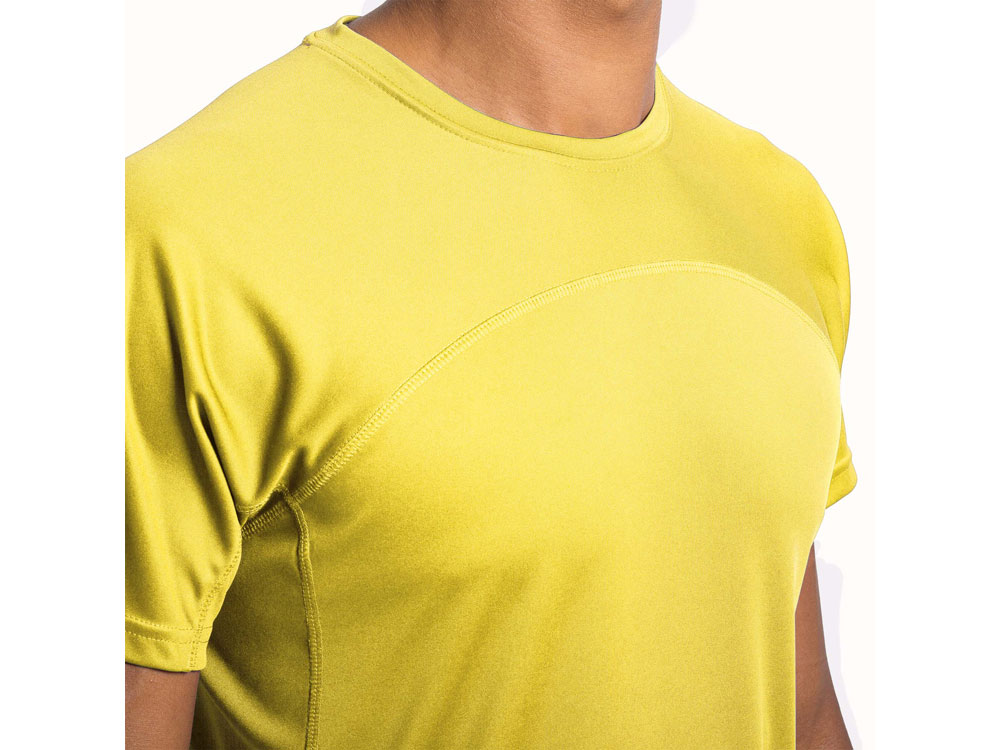 Спортивная футболка унисекс из технологичного полотна. Круглый вырез горловины укреплен со стороны спинки контрастной тесьмой. Спинка со вставкой из 3D сетки. Легко сохнущая дышащая модель -
