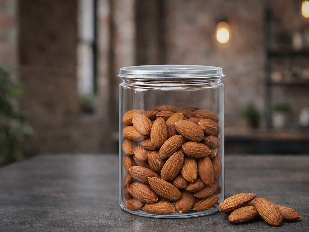 Орехи в банке — это не только вкусный и полезный перекус, но и отличное дополнение к подарку. Такой формат идеально подойдёт в качестве корпоративного сувенира: практично, эстетично и универсально для любого повода. Нежный сладковатый аромат миндаля раскрывается мягким, приятным послевкусием. Он богат питательными веществами и минералами, полезными для сердца — помогает поддерживать нормальное давление и снижать уровень холестерина. Миндаль отлично подходит для самостоятельного перекуса и ценится как источник растительного белка. Жареный миндаль гармонично дополняет блюда из мяса и птицы, овощные салаты, каши и йогурты. -