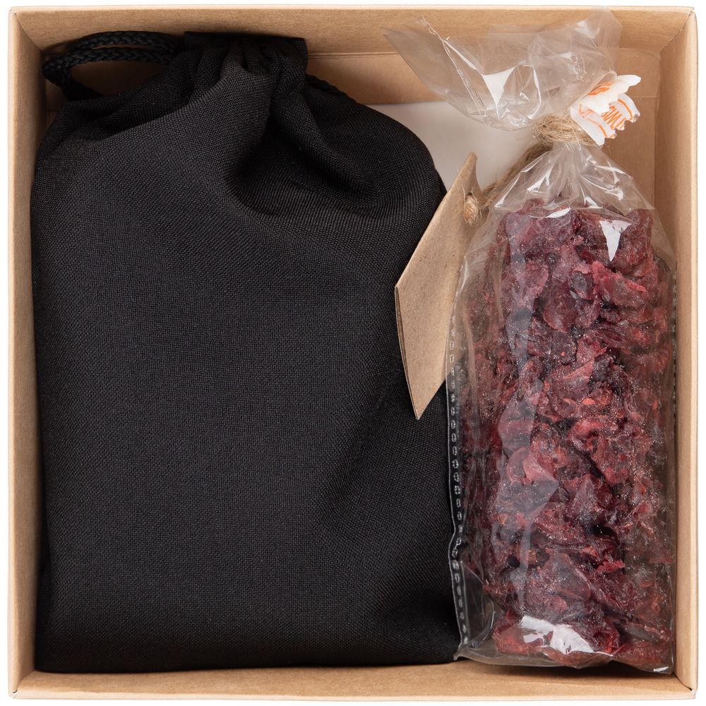 Omnom — небольшой подарочный набор для уютного и полезного чаепития. Черный крупнолистовой индийский чай в холщовом мешочке и сладкая сушеная клюква — запоминающийся знак внимания и деликатное выражение заботы. -