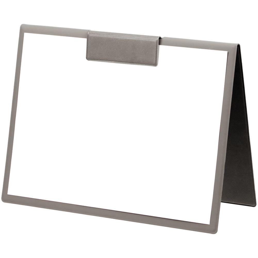 Папку можно использовать в стандартном вертикальном формате или перегнуть обложку и поставить в качестве таблички горизонтально. Магнитный клип удерживает до 10 листов. -