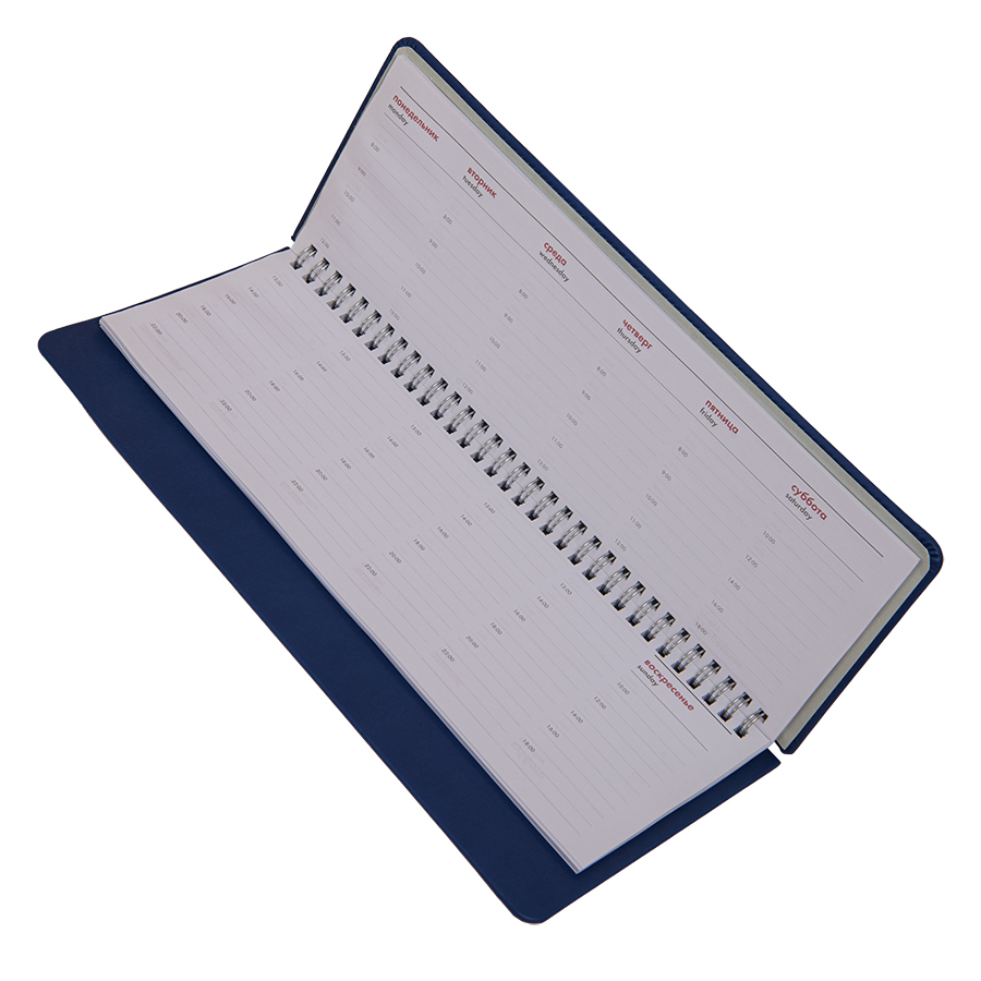 Цвет обложки, близкий к пантону 534C Размер 140*300 мм Переплет твердый, на металлической спирали, прошивка по периметру верхней обложки Обложка PU Velvet Блок недатированный, в линейку, прямые углы Бумага белая, плотность 70 г м2 Форзац нахзац серые 128 страниц Упаковка крафтовый сливбоксВ данный момент происходит смена справочной части блока. Внешний вид изделия остается без изменений. -