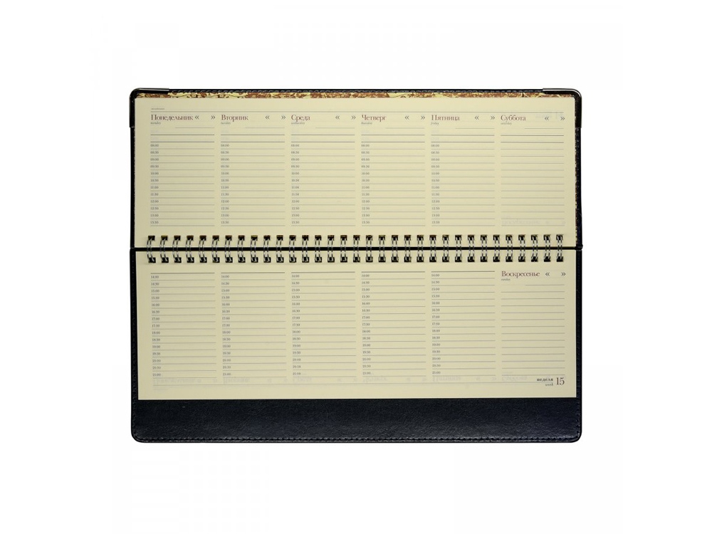 Планинг Persona – идеальный баланс между практичностью и статусностью. Великолепный переплетный материал прошит тонкой шелковой нитью в цвет обложки. Благородство в облик планинга добавляют металлические уголки. На контрасте с темным цветом обложки, блок состоит из листов бежевого цвета плотностью 70 г/кв.м. Раздел планирования дополнен справочной информацией на 21 страницах. Вечная и никогда не стареющая классика! Отличный дует с ежедневником Persona! -