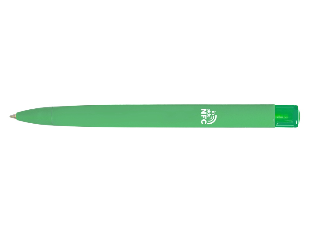 Пластиковая шариковая ручка Trinity K transparent Gum soft-touch с чипом передачи информации NFC обеспечивает быстрый доступ к рекламной информации. Для передачи данных посредством технологии NFC смартфон или планшет, которые поддерживают данную технологию, необходимо поднести к запрограммированной на ручке метке NFC (метка расположена под логотипом NFC). После этого на смартфоне или планшете откроется запрограммированная ссылка на сайт, ролик или начнется загрузка другой информации (заранее загруженной в сеть интернет). Таким образом метка работает как код, при чтении которого смартфон или планшет открывает определенную программу, активирует функцию или ссылку. Можно запрограммировать на метке NFC адрес сайта, каталог и другие рекламные материалы и раздавать вместо визиток. Метка NFC активирует одно действие на смартфоне или планшете.