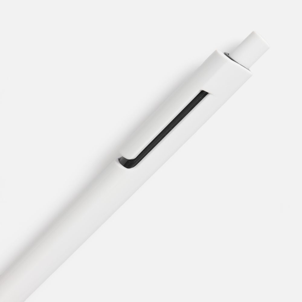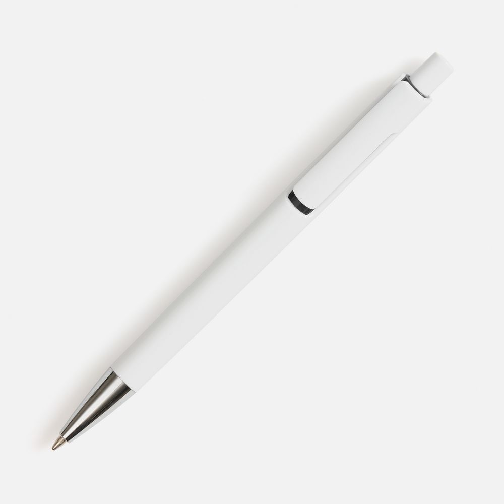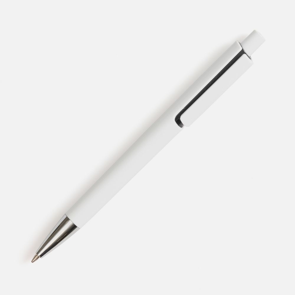 Шариковая ручка с глянцевым белым корпусом и цветовым акцентом у клипа, который дополнит логотип компании.- Механизм ручки: нажимной.